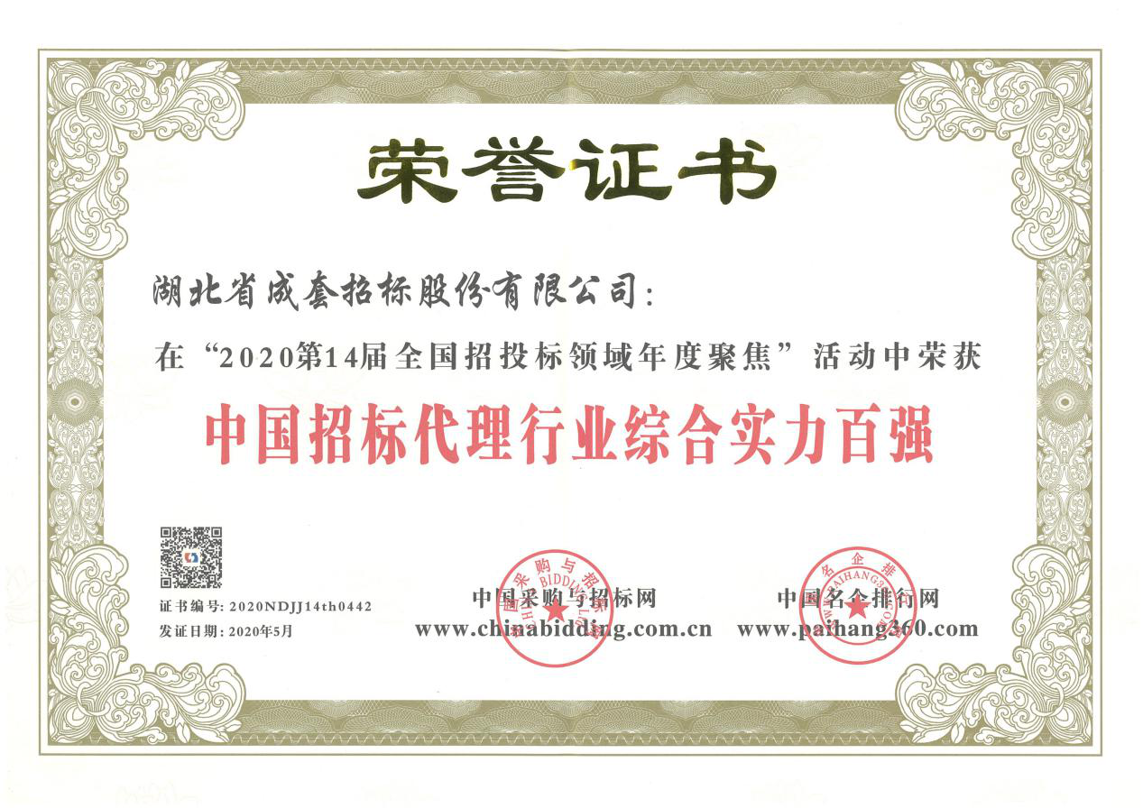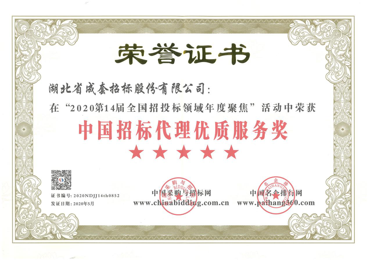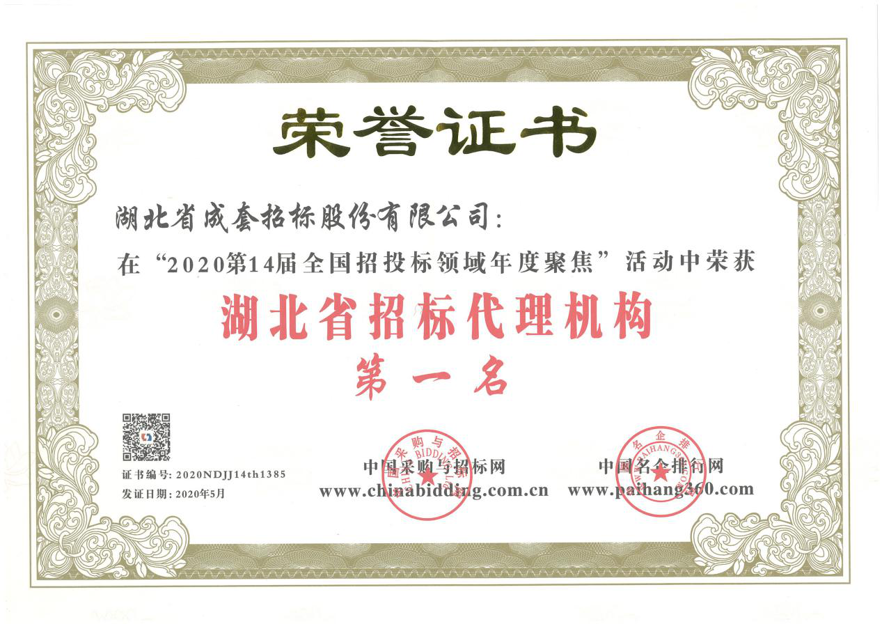 2020年湖北省招標(biāo)代理機(jī)構(gòu)第一名