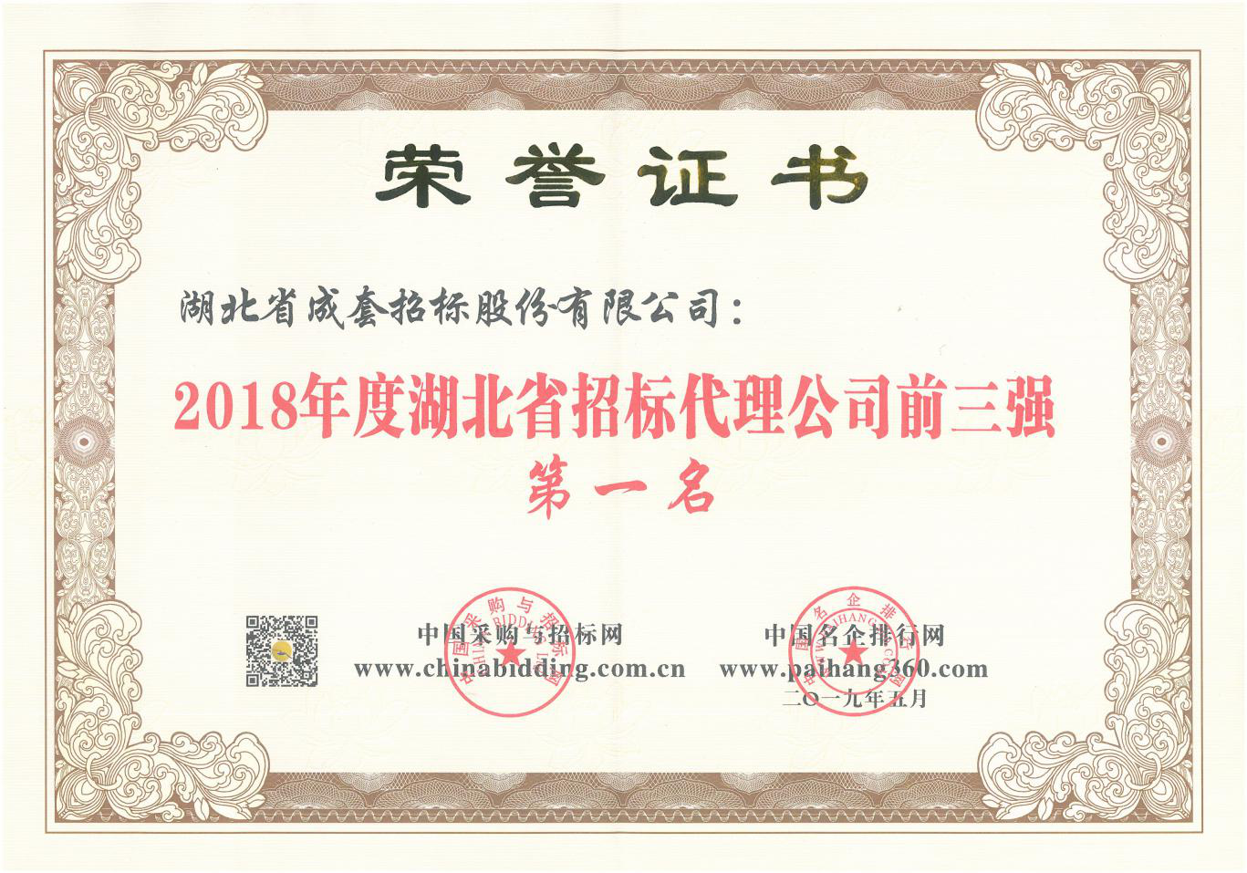 2018年度湖北省招標(biāo)代理公司前三強第一名
