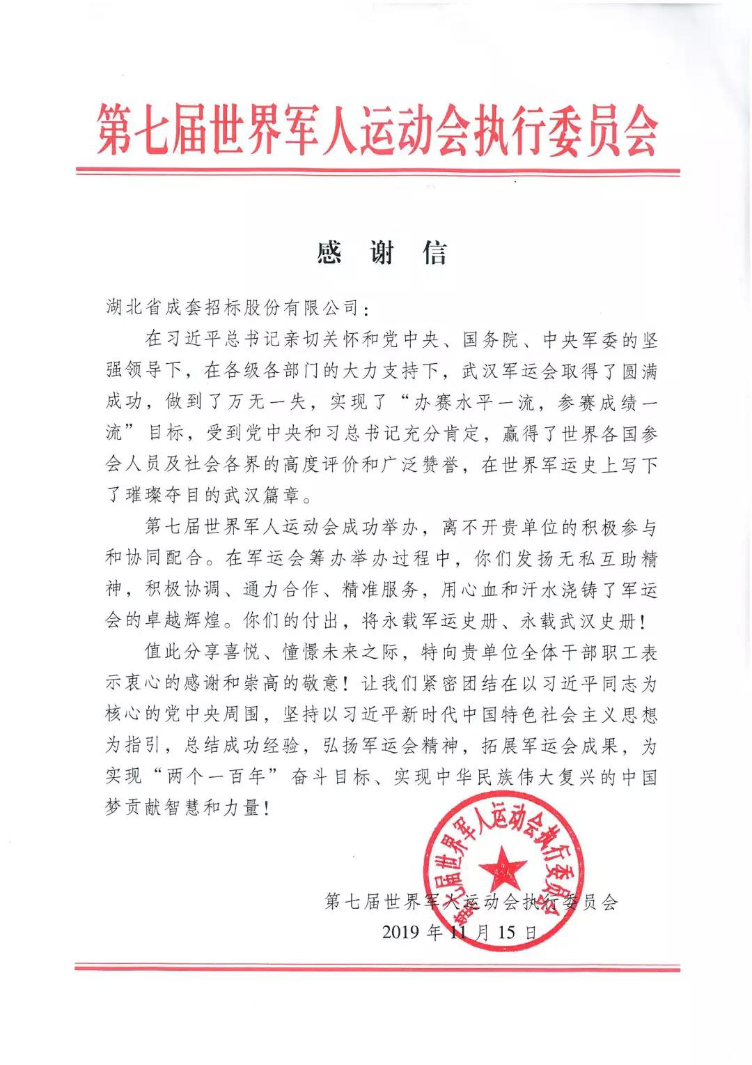 軍運會感謝信