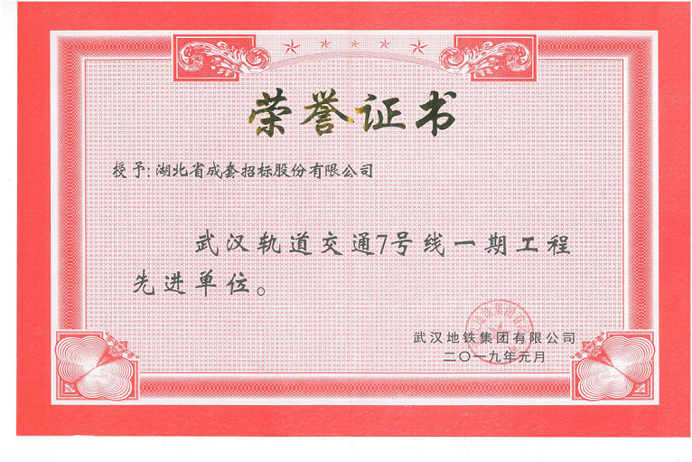 武漢軌道交通7號線一期工程先進單位