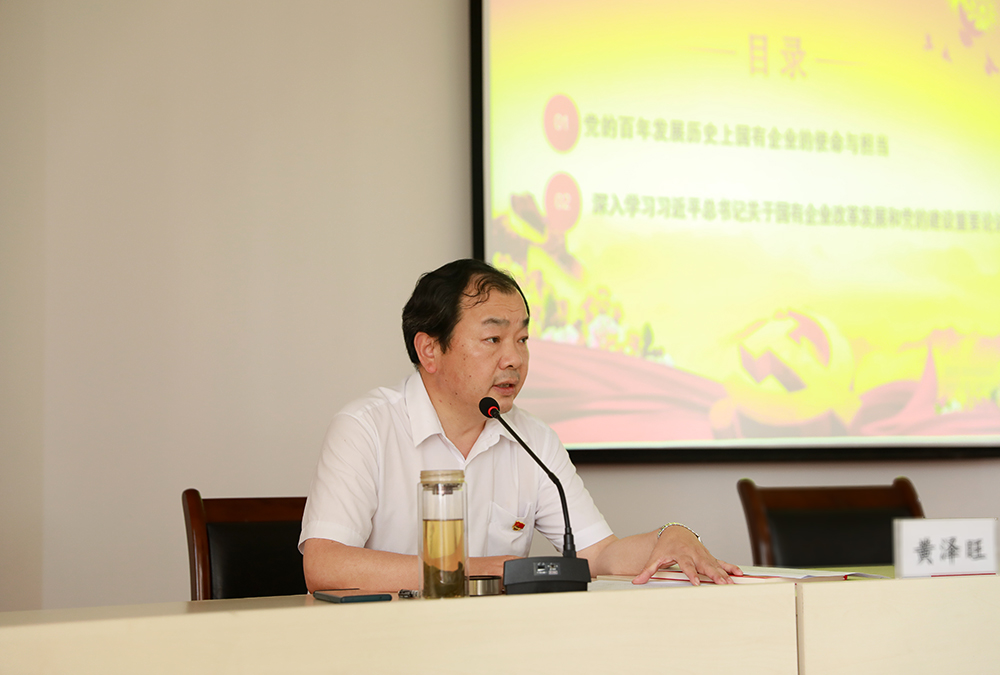 公司黨委書記、董事長黃澤旺同志以“‘深化改革謀發(fā)展,砥礪奮進譜新篇’——學習貫徹習近平總書記關于國有企業(yè)改革發(fā)展和黨的建設的重要論述”為主題作專題黨課,對黨的百年發(fā)展歷史上國有企業(yè)的使命與擔當,習近平總書記關于國有企業(yè)改革發(fā)展和黨的建設重要論述進行了深入講解。