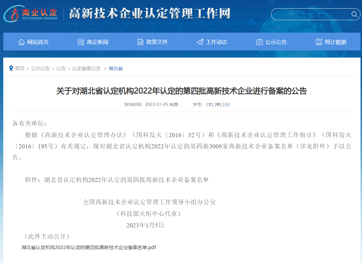 1月5日,在全國高新技術企業(yè)認定管理工作領導小組辦公室發(fā)布的公告中,成套公司榜上有名,順利通過2022年度第四批高新技術企業(yè)認定,獲得國家級“高新技術企業(yè)”資質(證書編號為:GR202242004985)。