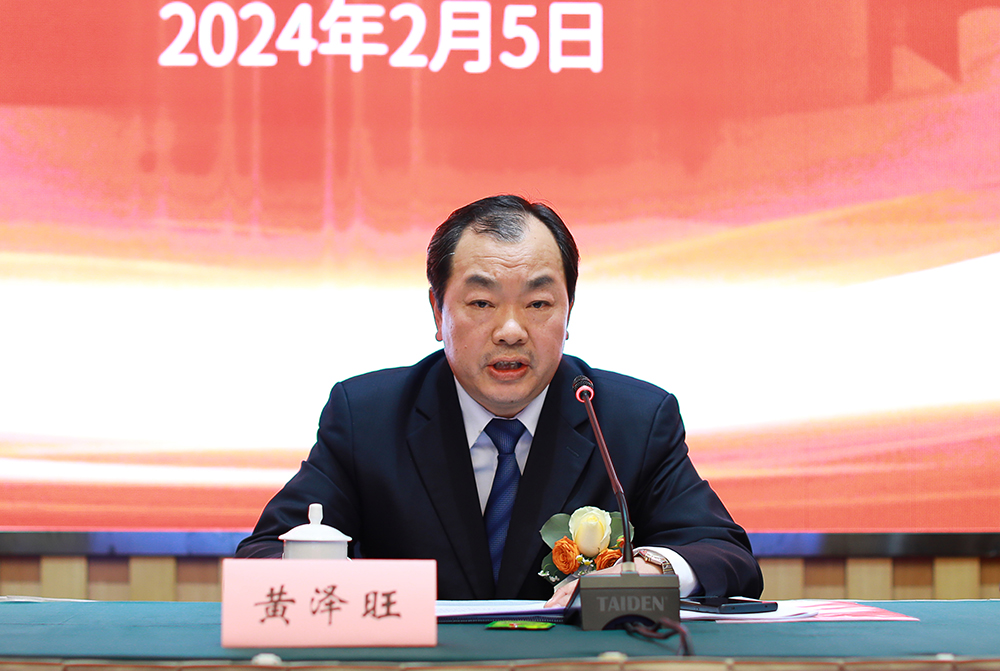 公司黨委書記、董事長黃澤旺在會議最后講話。他充分肯定了公司全年的工作成績,并對今年的工作提出要求:一是要以黨的領導為“舵”,引領保障高質量發(fā)展;二是以市場策劃為“要”,加快搶抓市場主動權;三是以防控風險為“基”,構建“大安全”格局,為公司高質量發(fā)展續(xù)寫輝煌篇章。