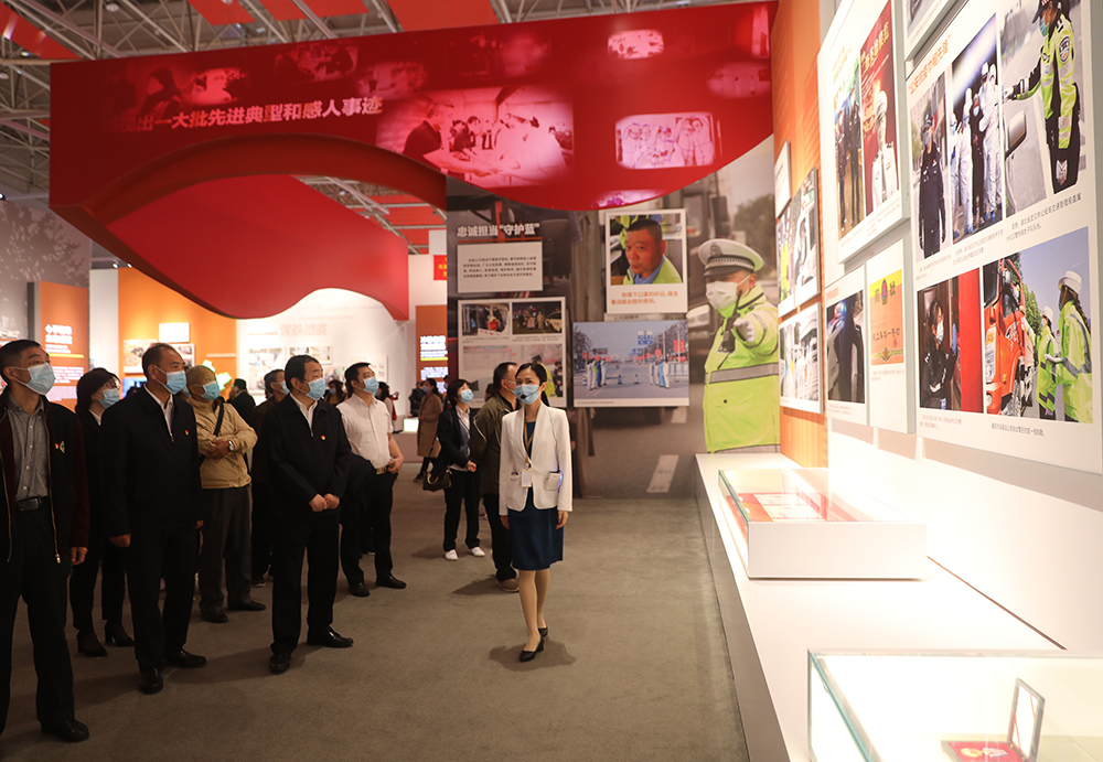 展廳里,“運(yùn)籌帷幄,掌舵領(lǐng)航”“生死狙擊,艱苦卓絕”等6個(gè)主題展區(qū)生動(dòng)展現(xiàn)了艱苦卓絕的抗疫歷程。講解員娓娓而談,參展黨員緩步前行,邊走邊看,一個(gè)個(gè)蕩氣回腸的抗疫故事逐一浮現(xiàn)在大家眼前,一幅幅圖片,一段段視頻,一組組數(shù)據(jù),牢牢吸引了大家的目光。黨員們不時(shí)駐足觀看,感慨動(dòng)容,“生命至上、舉國(guó)同心、舍生忘死、尊重科學(xué)、命運(yùn)與共”的抗疫精神鏗鏘有力,深深鐫刻在大家的心中。